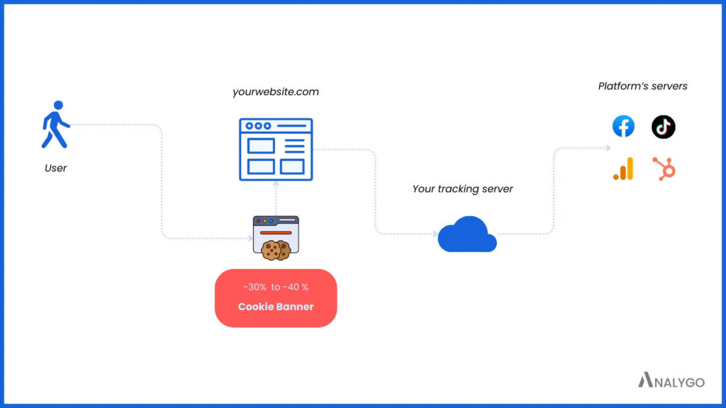 The real advantage of server-side tracking for Facebook is that you can load scripts from your own first-party domain. Although this may seem insignificant, a lot of data loss occurs because your scripts are easily blocked if they originate from sources like googletagmanager.com.