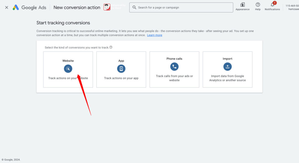 Section titled “Step 2: Create a Google Ads Conversion”Note