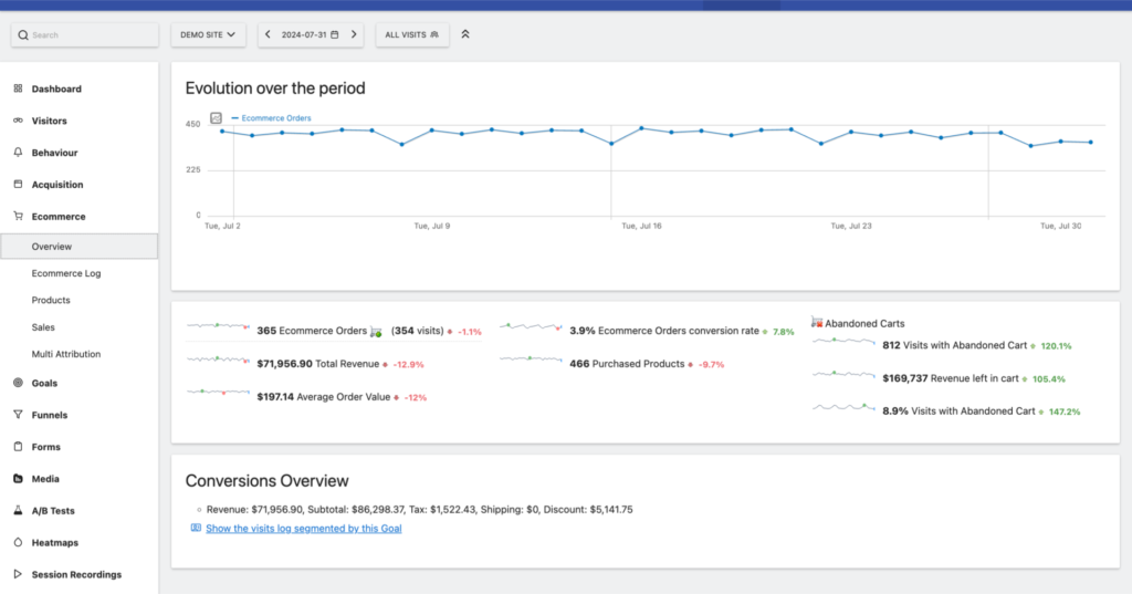 As the name indicates, this is where you find everything related to your ecommerce sales. You will need to configure ecommerce tracking to display this data.