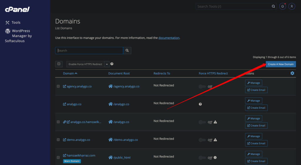Section titled “Create a subdomain”Browse to your Cpanel and look for “Domains”. Once you land on the page below, click on create subdomain.