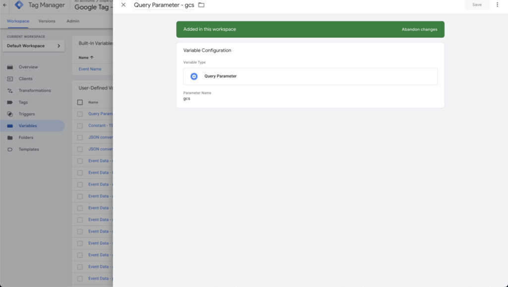 Now all you need to do is capture this information and turn it into an actual usable variable we can use to block tags. We use a variable called Query Parameter that will fetch a parameter like gcs containing consent states.