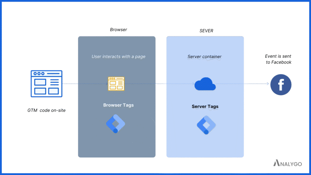 - Server-side: on server-side we will have almost an identical set up for Facebook tags.