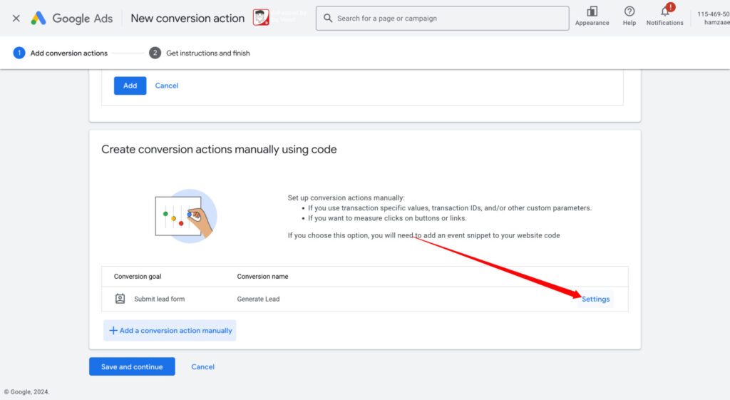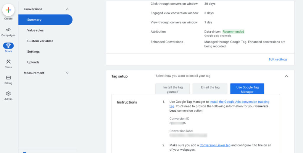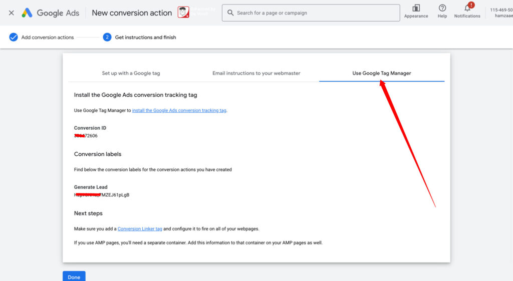 Click on save and continue. In “Use Google Tag Manager” tab, get the conversion label and conversion ID