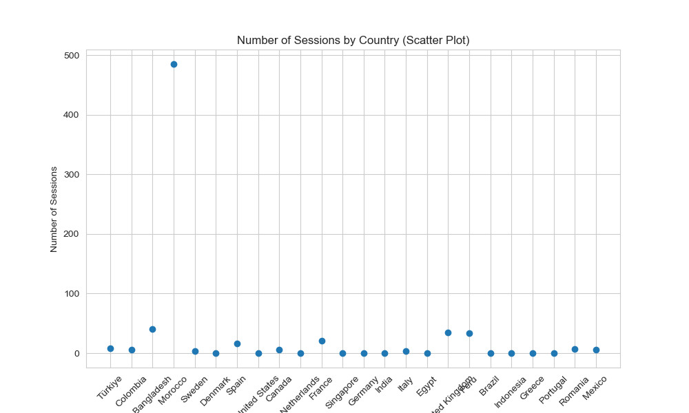 client=bigquery.Client(credentials=credentials,project=project_id)Lastly, we can start reading our BigQuery data. In the example below, we used a simple query to get the country and the sessions count. Finally, we transformed the query results to a DataFrame.