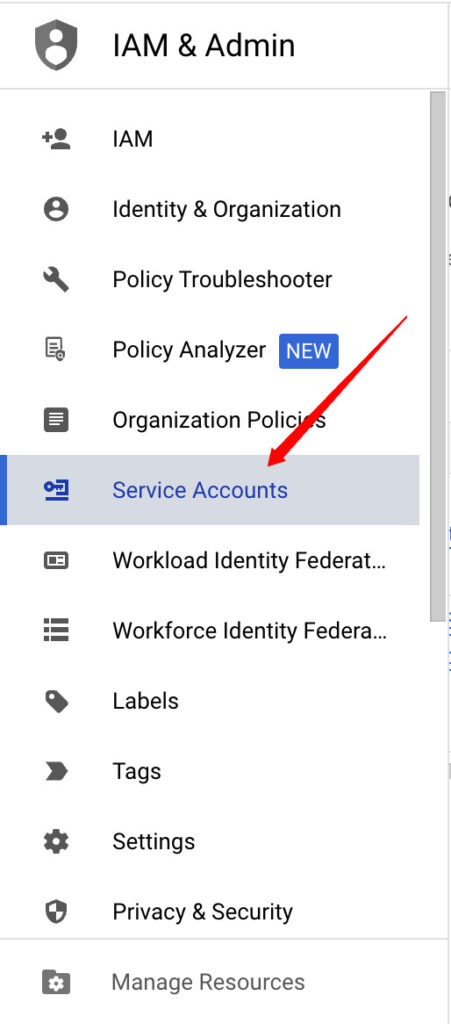 Click on IAM & admin and go to Service accounts.