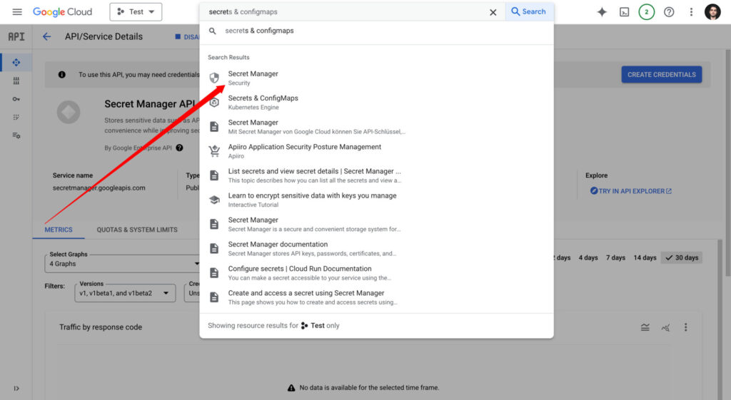 Next, make sure that the Secret Manager API is enabled as well. It will help us store any sensitive data in safety.